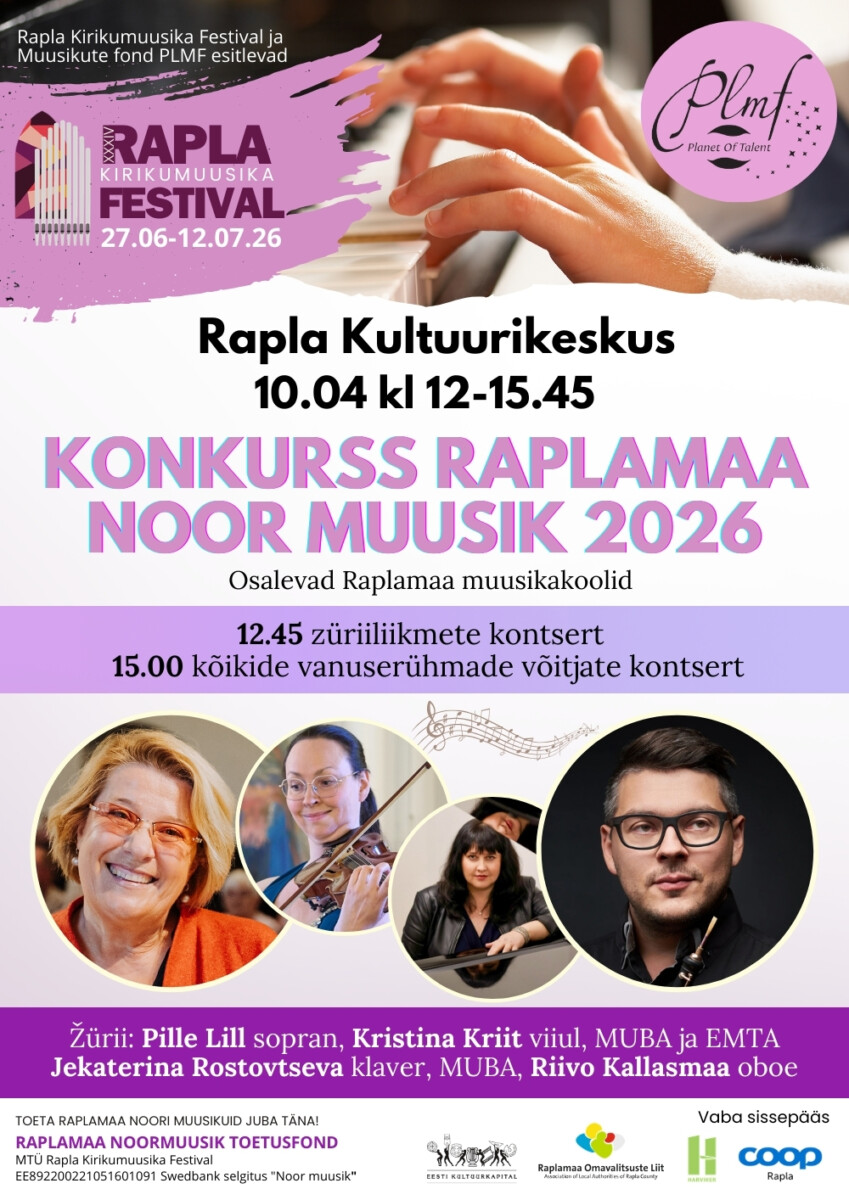 Raplamaa Noore Muusiku toetusfond kutsub kõiki muusikasõpru ja ettevõtteid õlga alla panema. Fondi fookuses on konkursi “Raplamaa Noor Muusik” parimate tunnustamine…