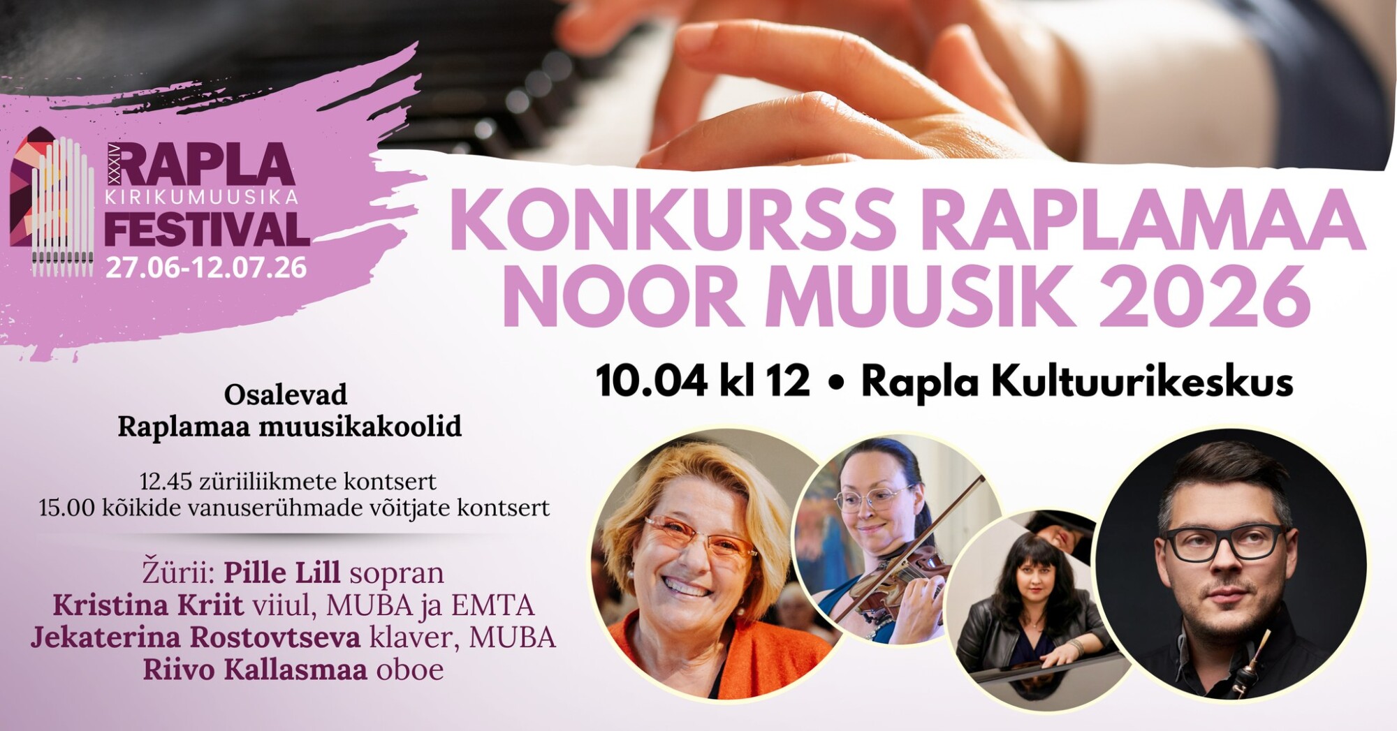 Rapla Kultuurikeskuses 10. aprillil 2026 kella 12-16. Konkursil osalevad Raplamaa muusikakoolide õpilased Märjamaalt, Kohilast, Raplast, Juurust, Kaiust ja Kehtnast. Konkursi eesmärk…