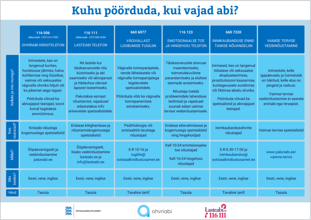 Abi saamiseks ja murest teatamiseks on mitmeid võimalusi:
