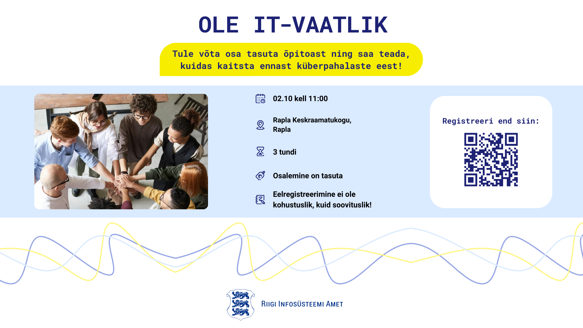 Riigi Infosüsteemi Amet viib läbi tasuta sarja küberturvalisuse õpitubasid, mis on mõeldud peamiselt 45+ vanuserühmale.